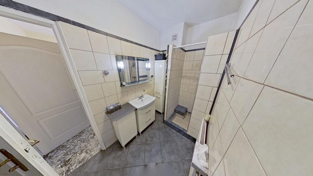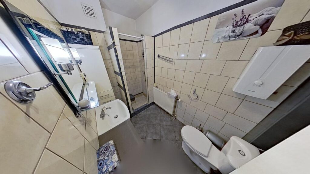 – łazienka z wc i wanną,